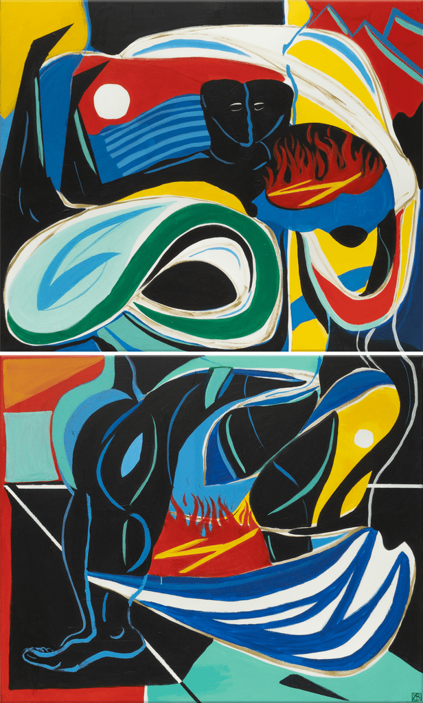 Stritzelbergers work embodies rebellion against the establishment and art world through raw intuition in the form of bold shapes and colors.